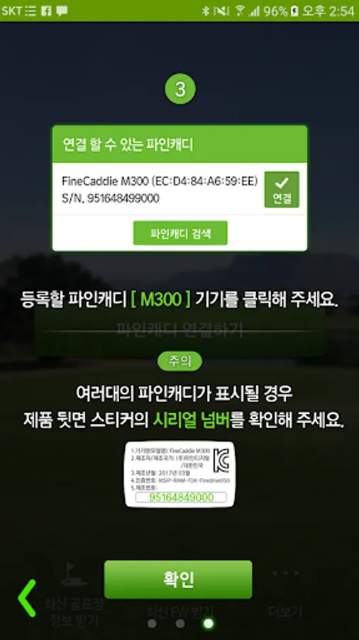 -Open FineCaddy app> SNS login> M300 power ON> Click “Connect” app>
