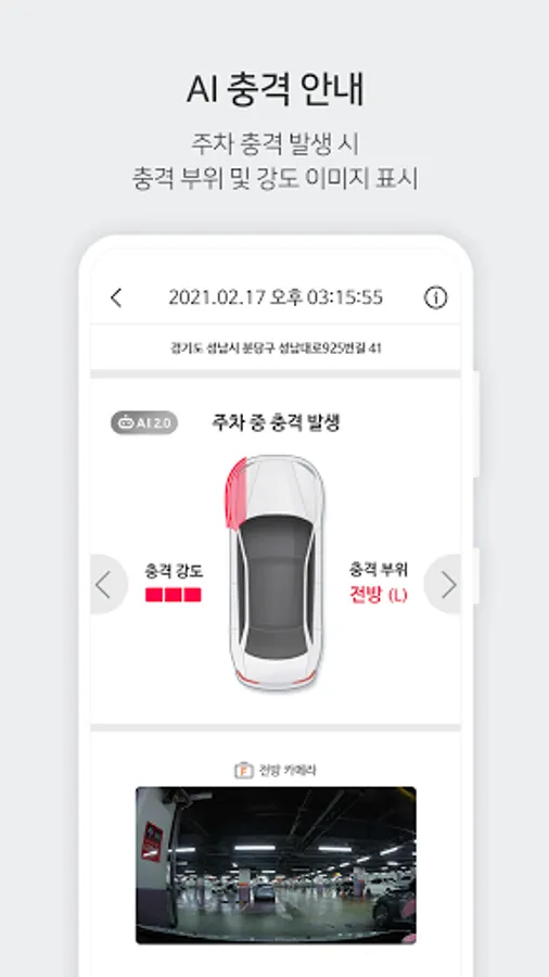 When parking with an advanced AI impact algorithm, it provides guidance by subdividing the strength and part of the impact that occurred in the actual vehicle, excluding everyday impact (vehicle doors, trunk opening and closing, etc.).