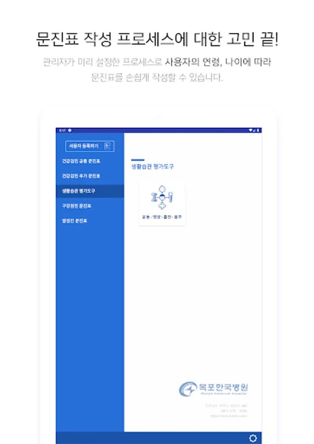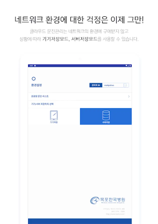 - You can enter medical questionnaires in "Device storage mode" regardless of network environment and outdoors.