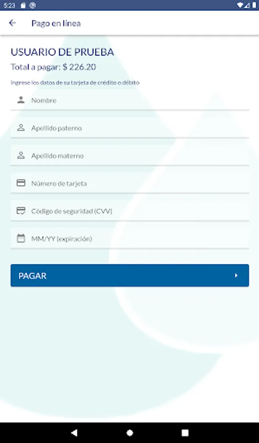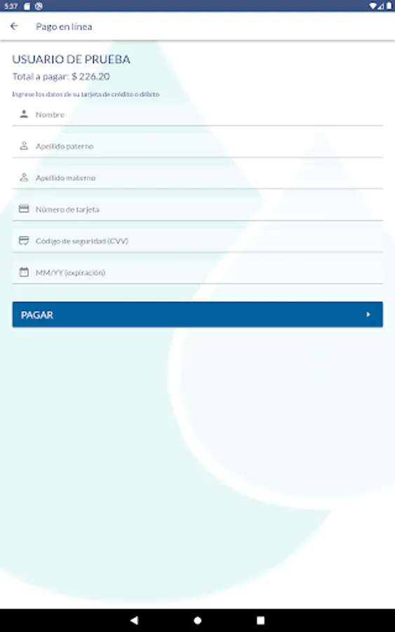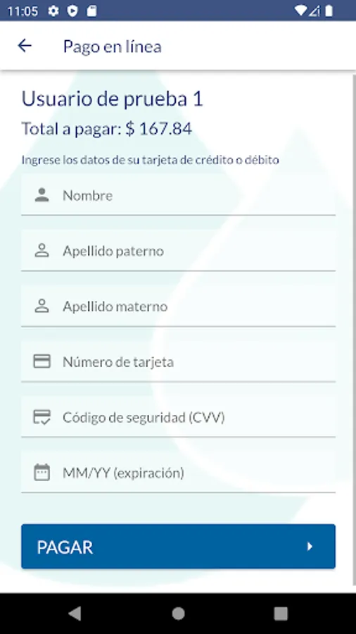 After registering your receipt, you can check the balance of the associated user and pay with a credit or debit card.