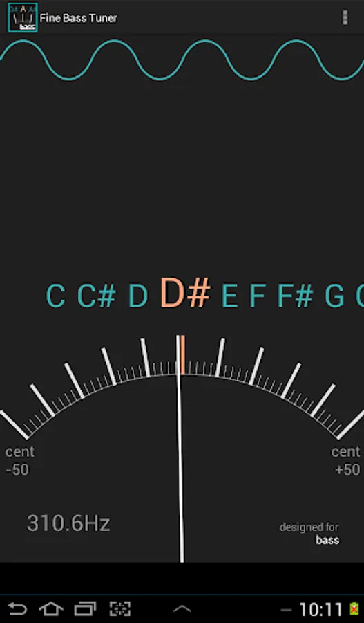 Fine Bass Tuner is a chromatic tuner designed for bass instruments that allows you to quickly and accurately tune your instrument using the built-in mic in your Android device. Features nice and clean interface allowing you to quickly find your pitch.