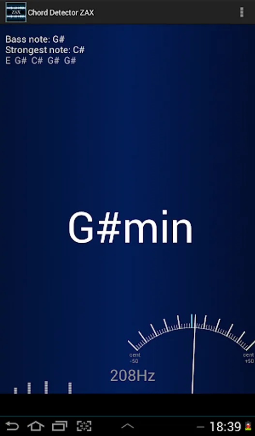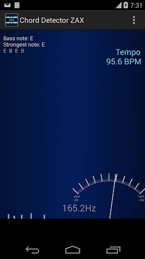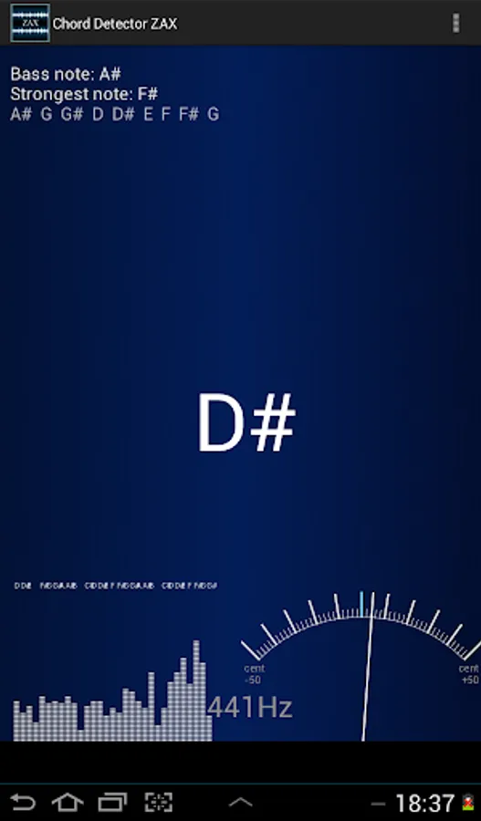 So ZAX can be used not only as a chord detector but also to show any instrument timbre. It shows all notes that are available as a frequencies in the sound. Basic tempo detection ( BPM detector) is also added to help you find the BPM for your song.