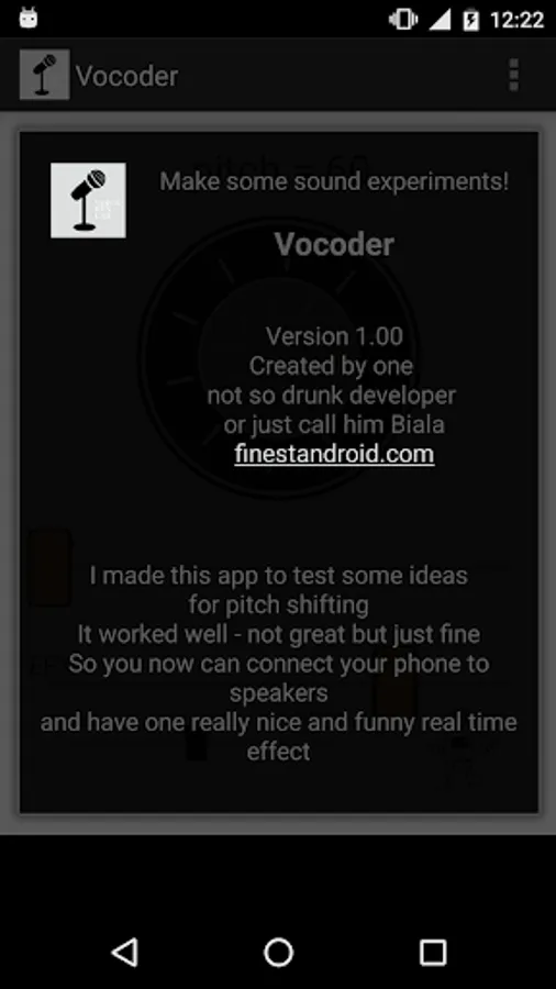 Vocoder is real time pitch shifter stompbox like effect. I made this app to test some ideas for new pitch shifting algorithm and it worked well. It is not great but just fine. It is not real vocoder logic but instead a combination of my secret algorithms that I am playing with at the moment.