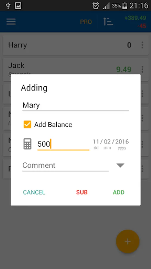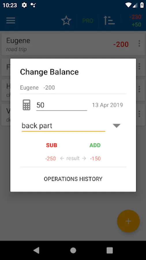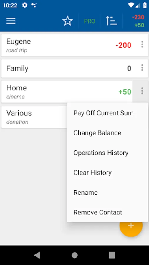 * add / remove loans and debts;