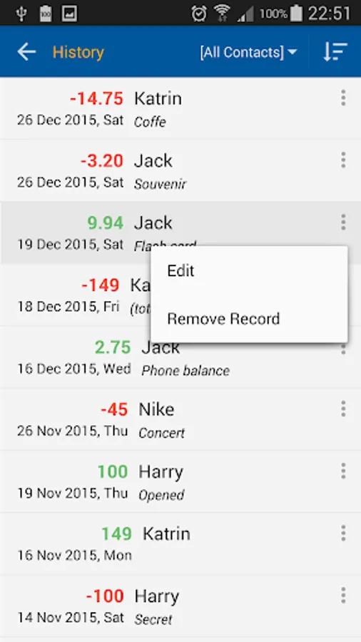 * see and edit the history of money transactions;