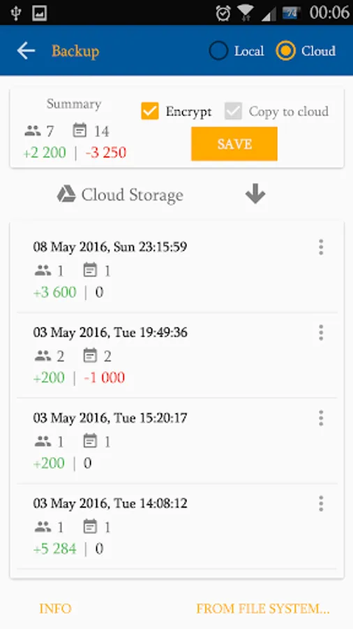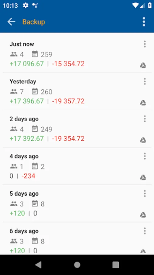 * save backup on SD-card and Google Drive;