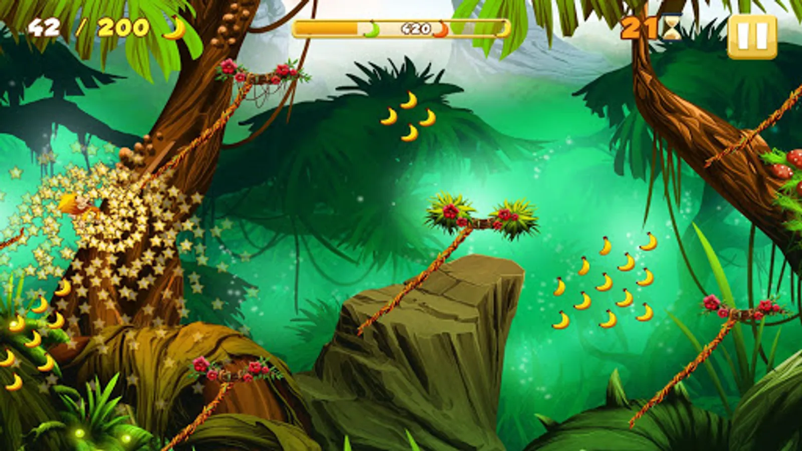 Download now and experience the joy of flying along the vines through various environments!