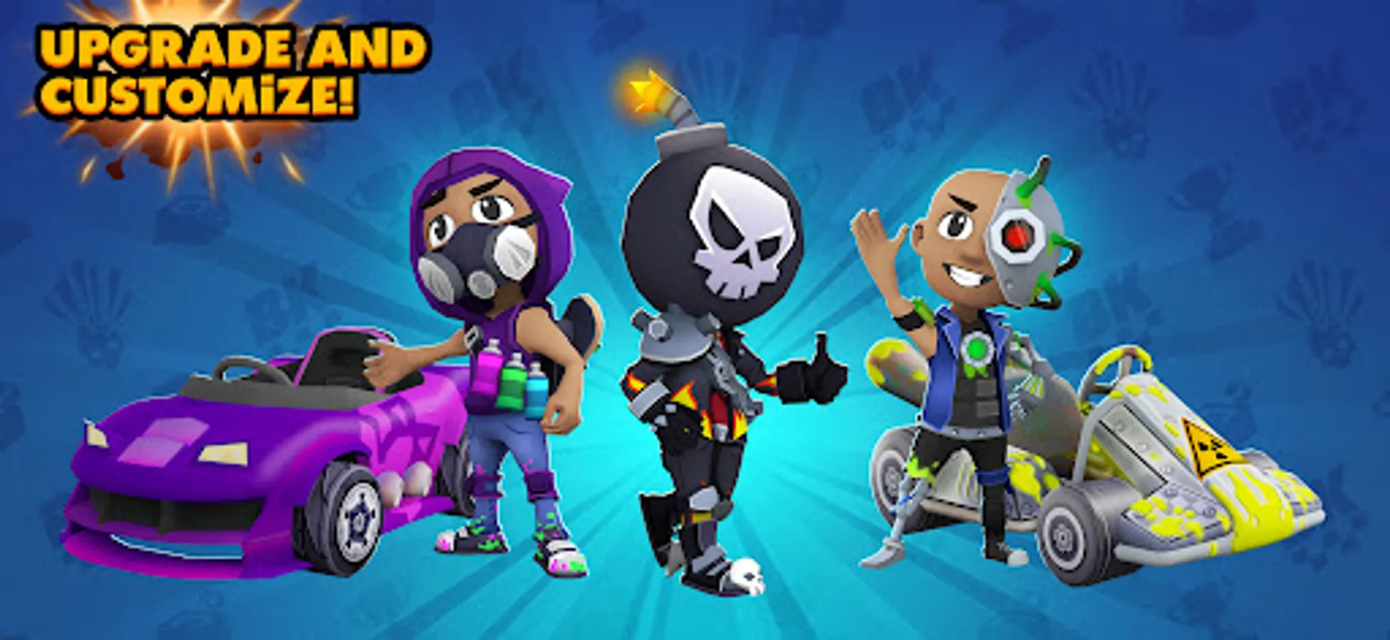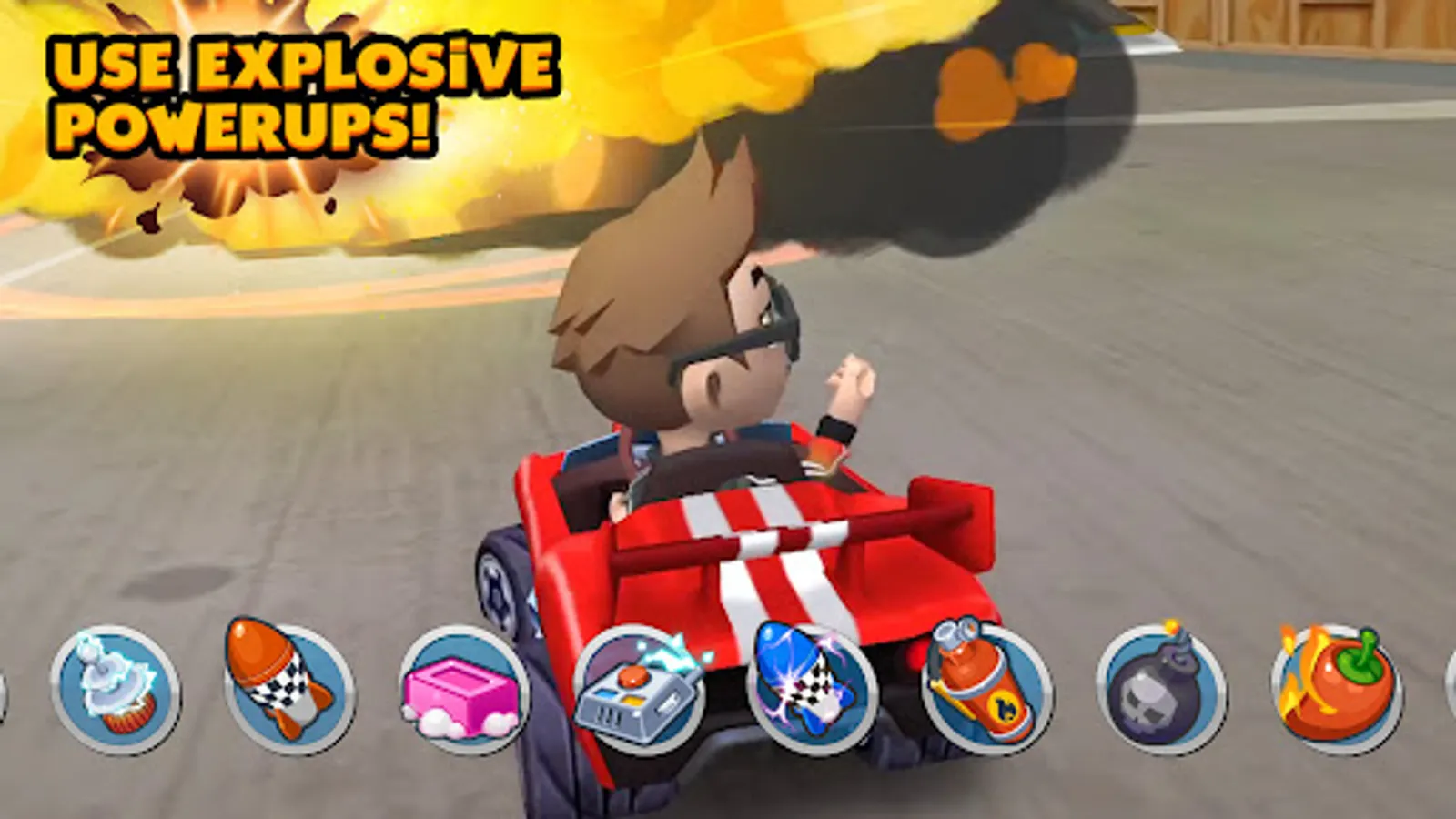 Boom Karts is a free-to-play online multiplayer go-kart racing game. Race your opponents to the podium or tackle the adventure mode challenges to earn your bragging rights. Challenge your friends in epic races with custom lobbies allowing you to create the rules of the race. Upgrade and customize your go-karts and avatar with items earned through game play.