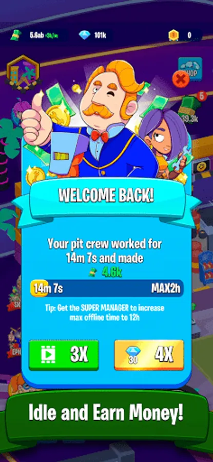 Earn money while you idle offline! In Garage Empire, your money manager will keep collecting your cash even when you are offline. Your loyal money manager will keep the money safe in his vault while you are idle. You can come back later and collect your cash rewards and work on becoming a rich magnate!