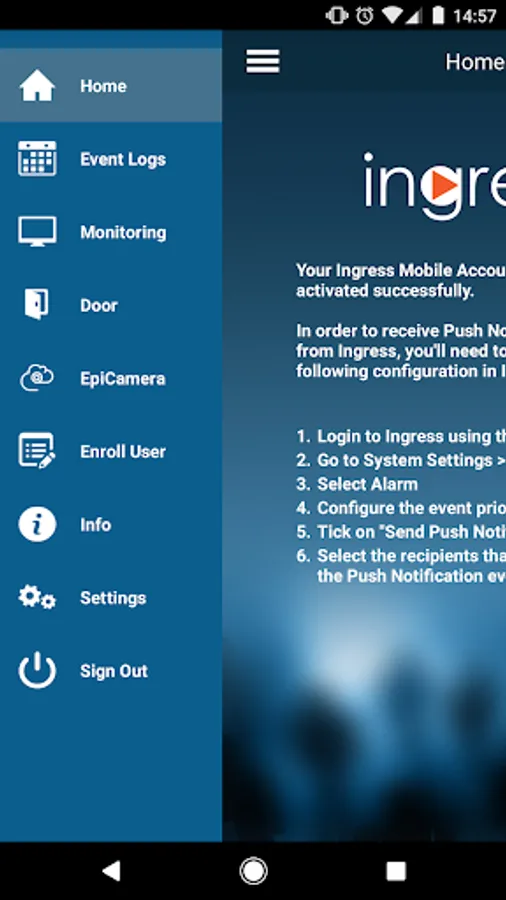 Ingress is FingerTec’s bundled door access control management software for its biometrics and card system terminals. Taking it a step further to provide convenience and mobility, FingerTec presents Ingress Mobile for Android users. The app is designed for users to monitor activities and view event logs from anywhere, at anytime. Ingress Mobile also allows user registration from the mobile phone and connection with EpiCamera, the cloud surveillance solution. Ingress Mobile will send push notifications directly to your mobile in case of any door activities and alarm being triggered. Ingress Mobile is in constant communication with our dedicated server, ensuring that you be kept alerted during emergencies. More features will be added soon.