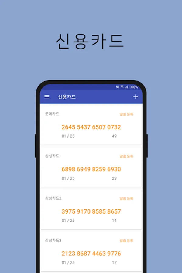 Security card, credit card, bank account, account information can be stored for easy browsing.