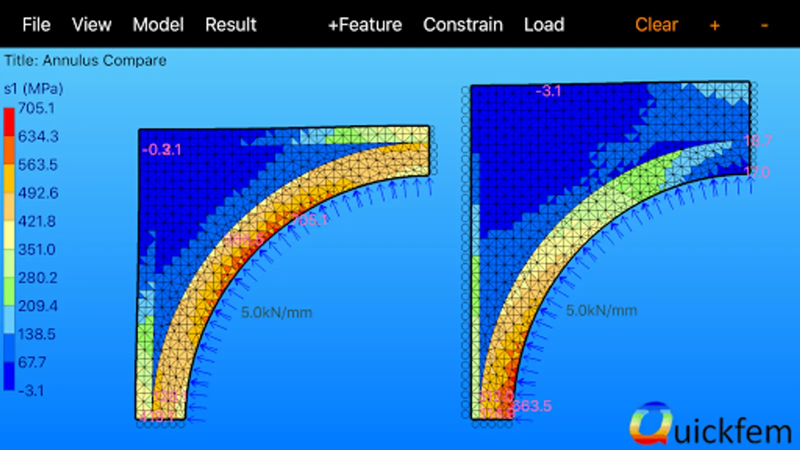 Successful engineers must have a natural feel for loads paths and stress concentrations to know what is important. This critical insight is usually hard won via thousands of hours on syntax heavy, Finite Element Analysis, behemoths such as Ansys, Abacus or Patran/Nastran. With Quickfem, you have the fastest FEA modeller in the world! Near instant feedback creates the tight iteration loops necessary for rapid discovery.