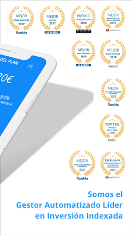 With more than 20,000 clients, and growing, which corroborate the success of our passively managed indexed portfolios. We also manage the investments of renowned entities such as Caser Seguros and EVO Banco.