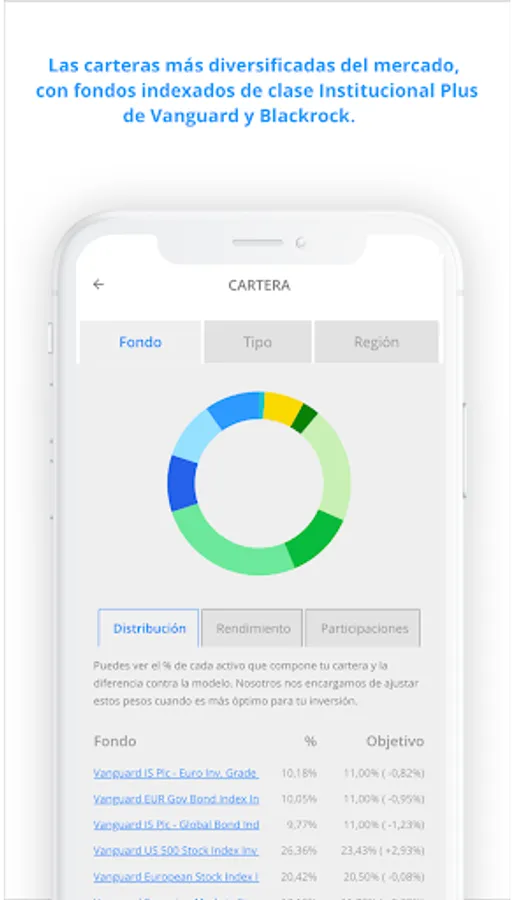 ✓ The most diversified portfolios on the market. Lower risk for your investment thanks to a global exposure in 25,000 different positions with the largest managers in the world (Vanguard, BlackRock, etc.)