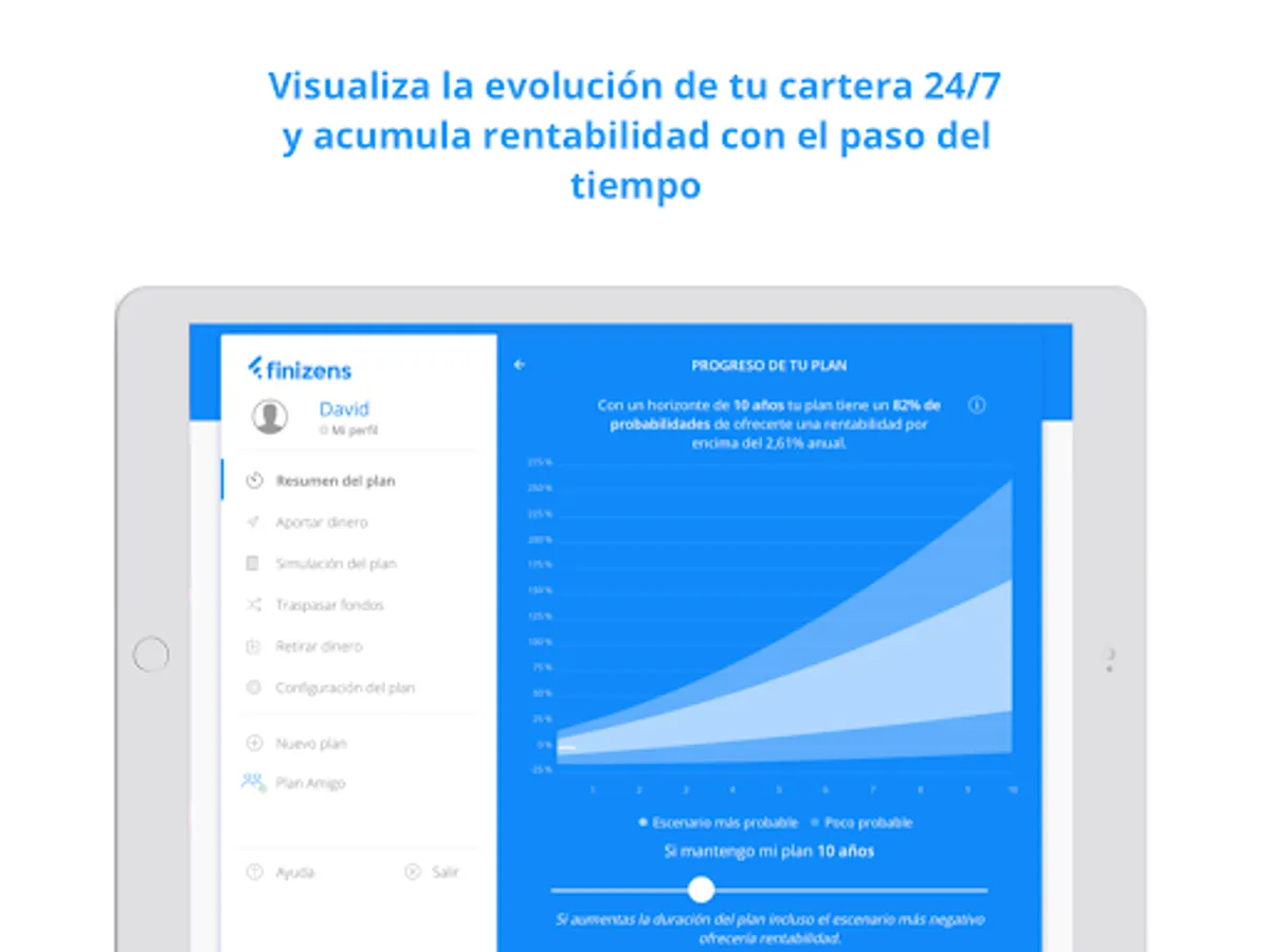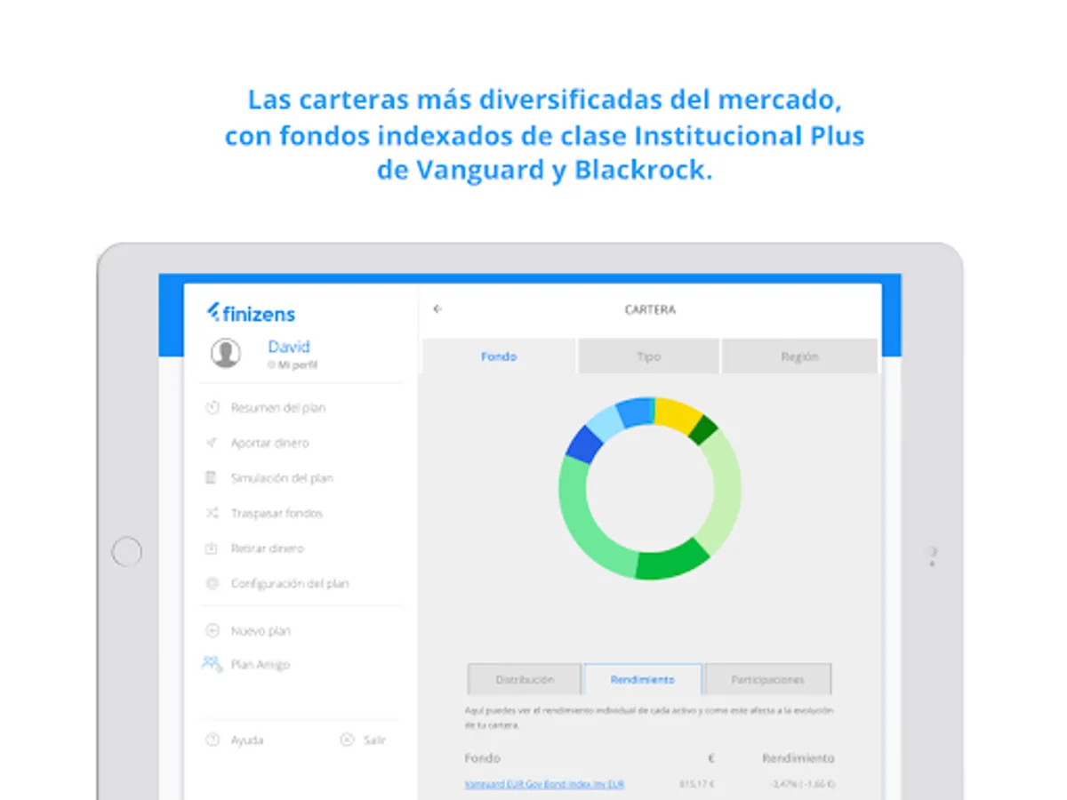 Finizens is an independent automated manager (roboadvisor) specialized in index investing (index funds and ETFs), which offers a solution superior investment (higher profitability, greater diversification and lower costs) than traditional investment products.