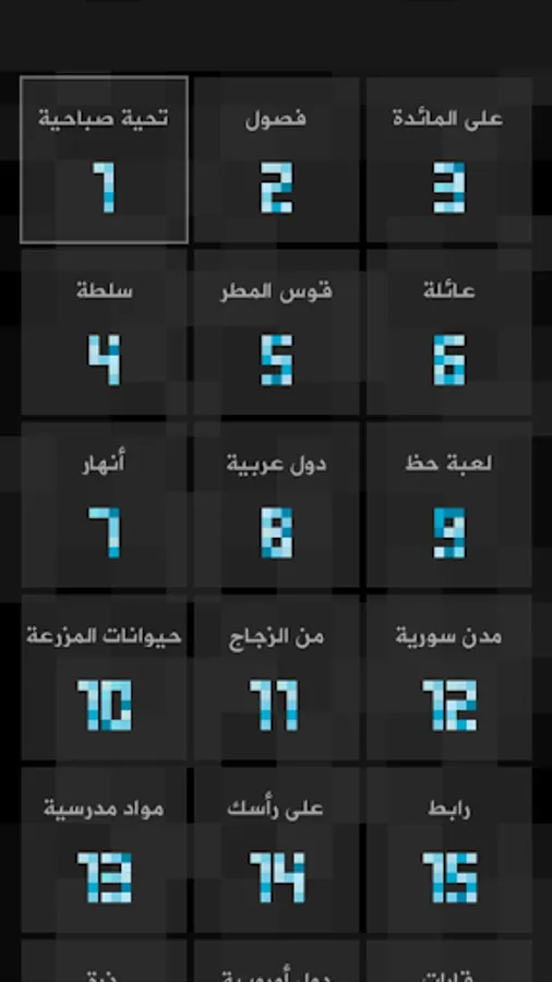 A crossword puzzle game: the title of each stage symbolizing a group of words, insert the pieces to form these words.