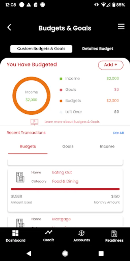 Your FinReady dashboard summarizes important financial information such as: account balances, transactions, net worth, budgeting, credit score, cash flow analysis, estimated home value, spending analysis, offers and promotions from your financial institution, and an information center with personal finance articles and videos, all in one place.