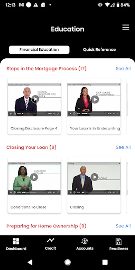 Work with your financial partner or institution to best prepare you for home ownership by planning for a down payment, establishing reserves, managing your debt to income ratio, improving or maintaining your credit, loan scenarios through our calculators, establish your projected loan to value, and more. Visit the readiness assessment in your app to see a snapshot of your credit overview, debt to income ratio, cash reserves, employment, down payment and sales price.
