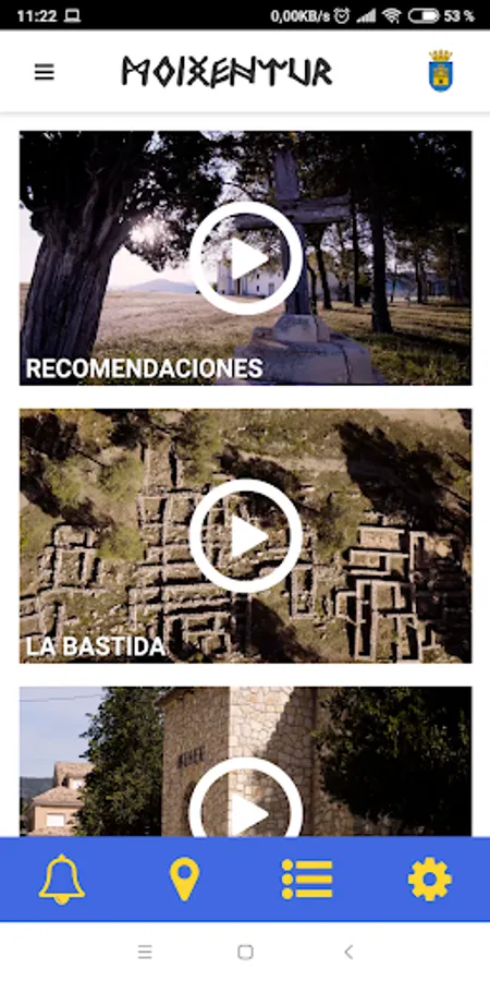 APP of the municipality of Mogente / Moixent of the Valencian Community in which the user can visualize videoguías of the different points of interest of the municipality.