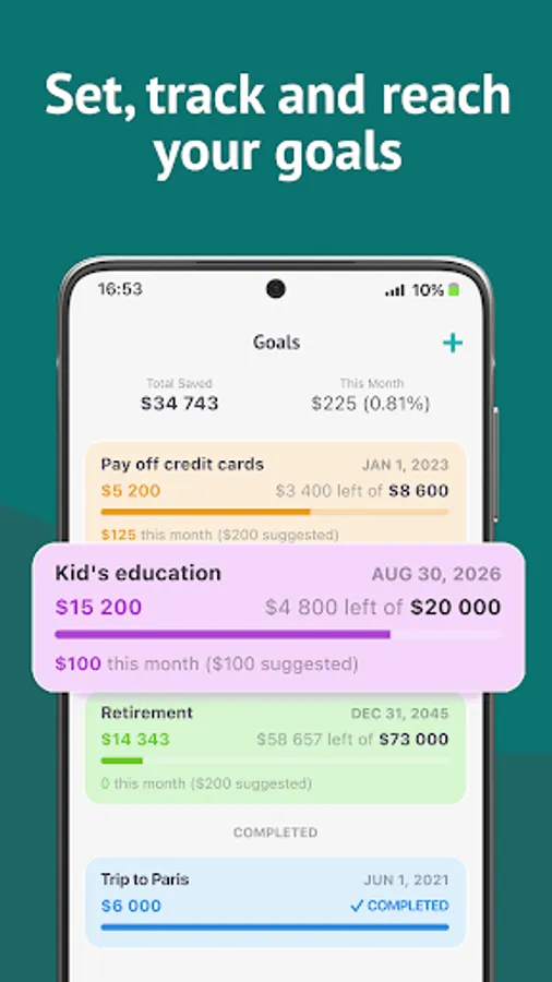 Set, track and reach your long term and short term financial goals