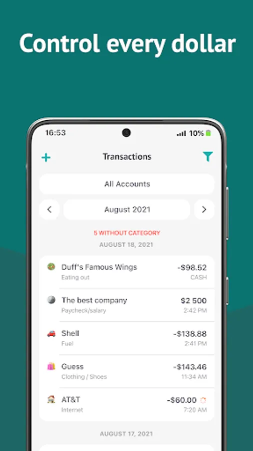 Finmatex will track all your expenses and categorize them. You can split transactions, change the category, add a photo or write a note. Also, you can create your own transactions for cash spending. This budgeting app is really flexible!