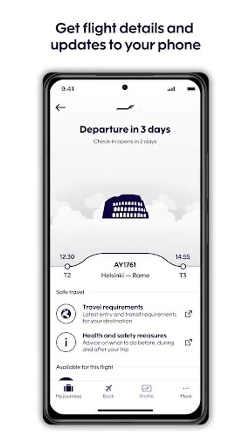 The Finnair app is a travel companion designed to give you peace of mind throughout your journeys, from preparing for the flight to landing at the destination.