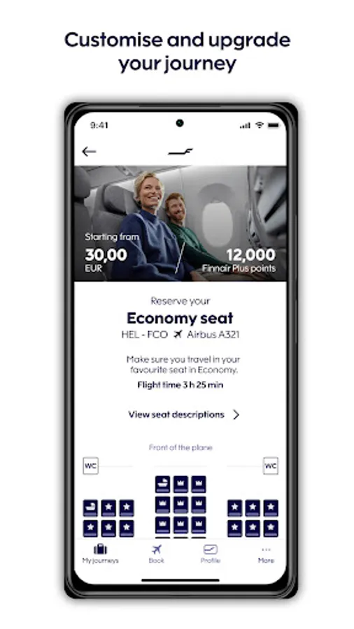 We offer Business class upgrades, Economy Comfort seats and other extra services through the app, so you can customise the flight to your needs. You can pay with credit card, vouchers or Finnair Plus points.