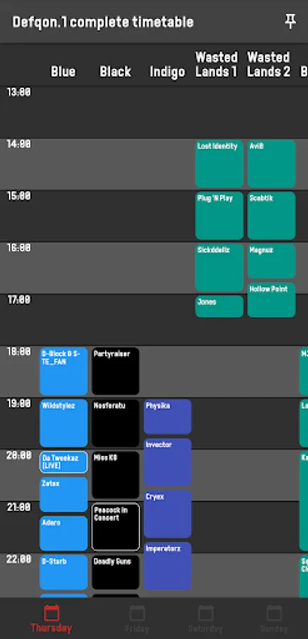 This app contains the complete Lineup for Defqon.1 2022, and it allows you to pin your favourite acts.