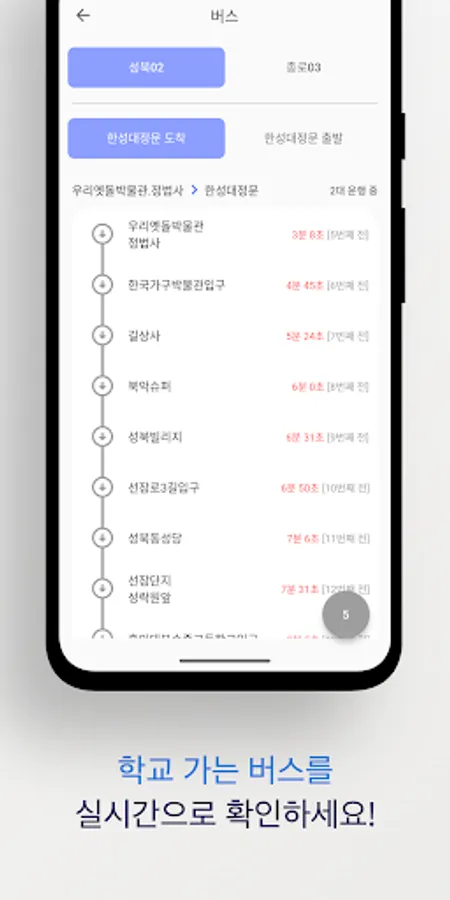 1. You can check the bus route map and arrival information of Seongbuk 02 and Jongno 03 in real time!