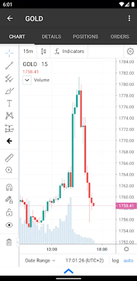 On the mobile app you can see the movement on the charts over different time periods and set analysis to research your asset.