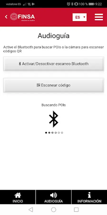 The application needs localization, bluetooth and imaging permits in order to scan QR codes. Then look in Exhibitions for the event you want to go. From the selection you can choose the Information Point manually or through the Audioguide icon so that the application itself detects the Information Points.