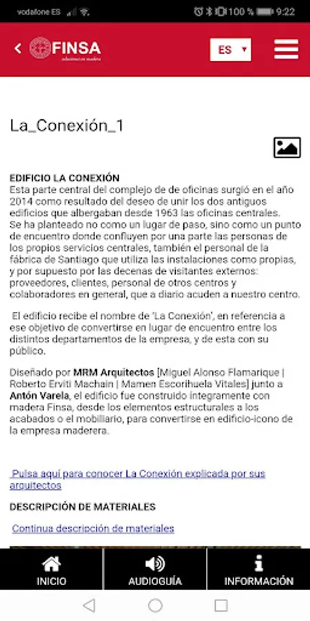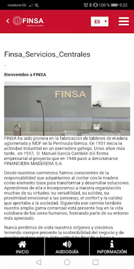 With Finsa Eventos you will be able to independently follow the steps of the Exhibition created by Finsa. The application allows to know the information prepared by audioguide or texts on the screen of the device.