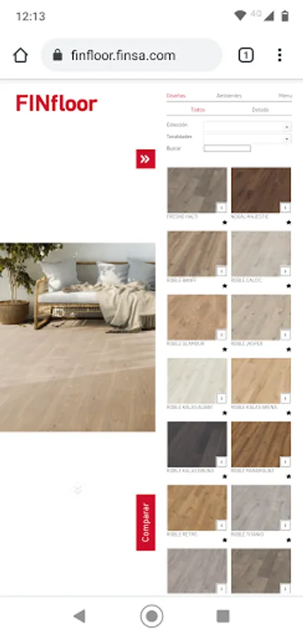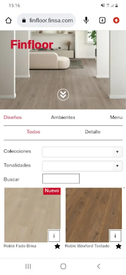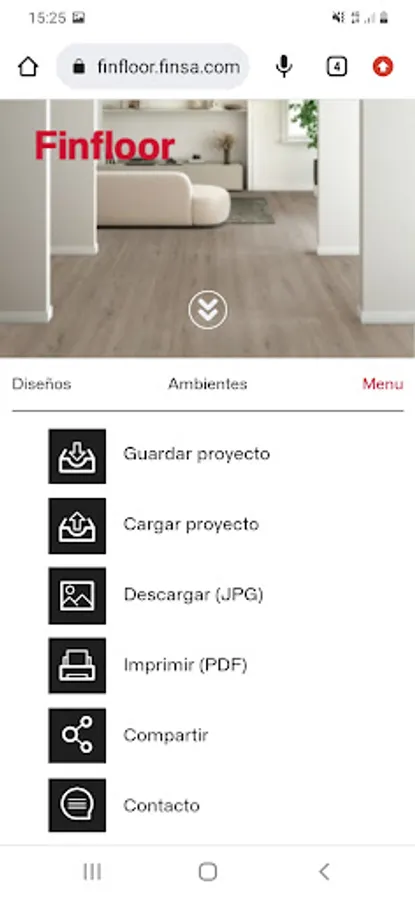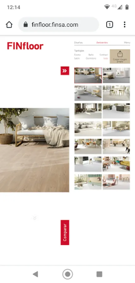 In this APP you will find a comparator in which you can choose an environment and test it with different FINfloor designs. In addition, you will find a new functionality through which you can upload or take a photo of your space and modify the floor to choose the one that best suits your style. Finally, you can save your creation and share it with whoever you most want.