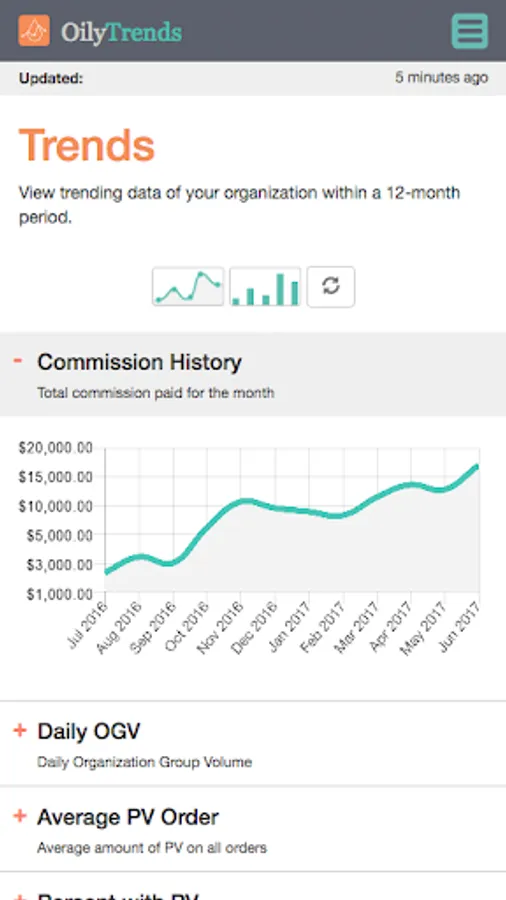 Track business data trends from the day you signed up!