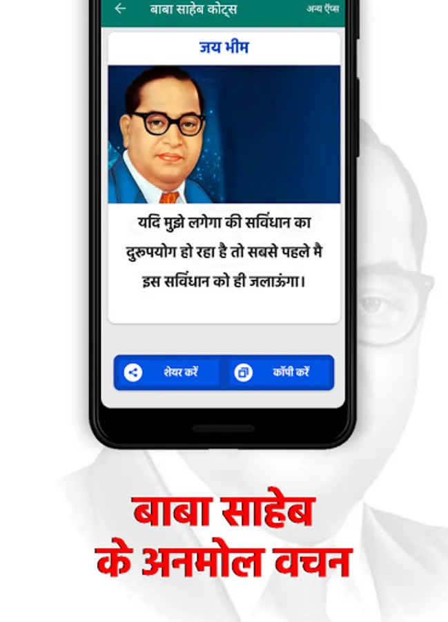 बाबा साहेब के अनमोल वचनों का एक संग्रह जिसे आप शेयर या कॉपी कर किसी भी सोसाइल साइट पर पोस्ट करें।