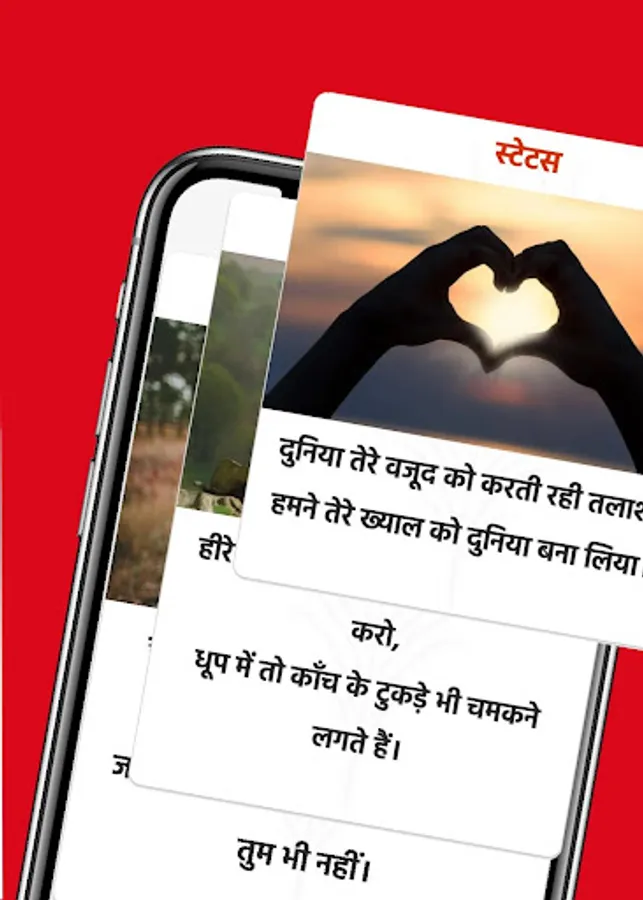 We brought to you A new Hindi Status Collection App shares the best greeting and make cards with this app. this app helps you to set a status on your social media, any type of statuses like Attitude Love sorry and much much more in this one App.