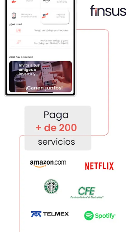 • Savings account – By depositing in your savings account you generate returns every day. You can save from $1 peso, without charging commission, or minimum balances.