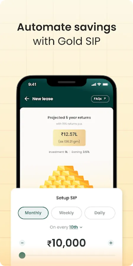 Daily Savings: You can set up a recurring daily savings amount which will get invested in digital gold. You can start saving as low as Rs.10.