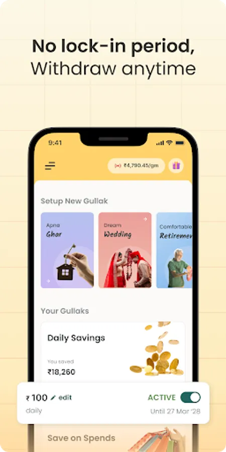 Gullak savings app currently has four savings options by which you can save in Digital Gold