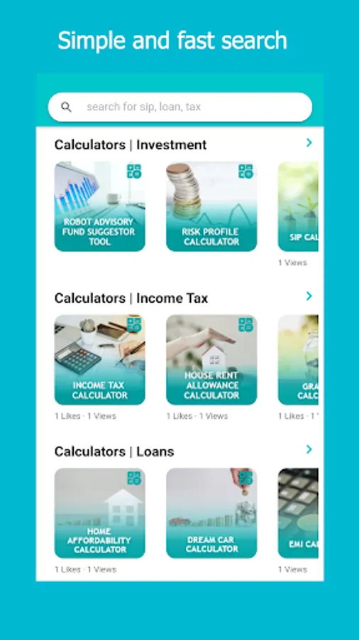All in one investment app - Top Mutual funds and SIP calculators, income tax planning, retirement planning, personal loan, home loan, car loan, gold, PPF and LIC.