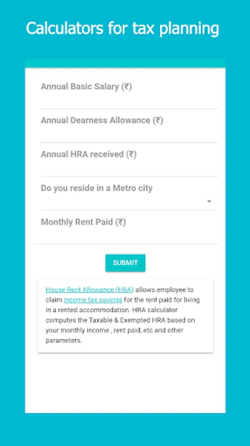 - HRA calculator (house rent allowance calculator)