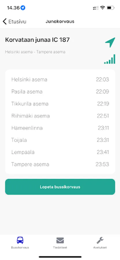The bus compensation provides timetable information for rail passenger information in situations where a train is replaced by another means of transport.