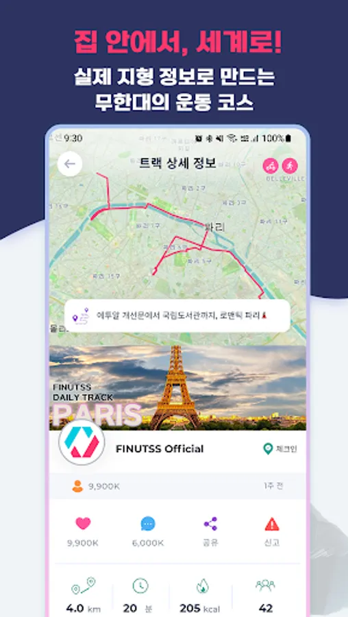 Peanuts is a home training app that allows you to go anywhere from home based on real geographic information.