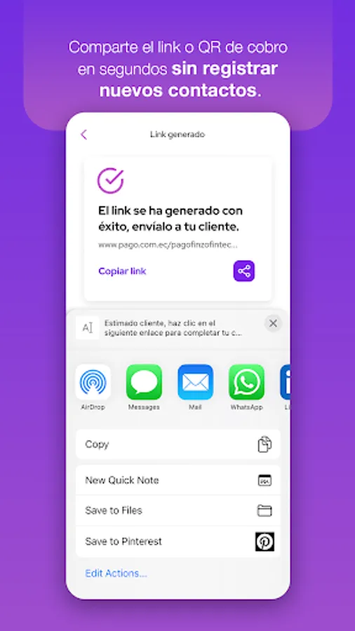 · Create collection links or QR with the value of the purchase so that your customers pay directly.
