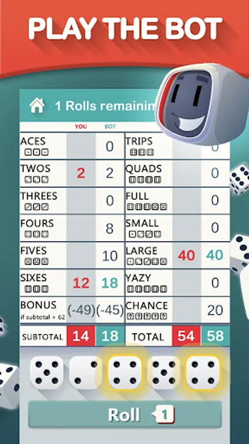 This is the coolest yatzy dice game ever. Try it now and let us know what you think! We are always improving. It is a fantastic family dice game.