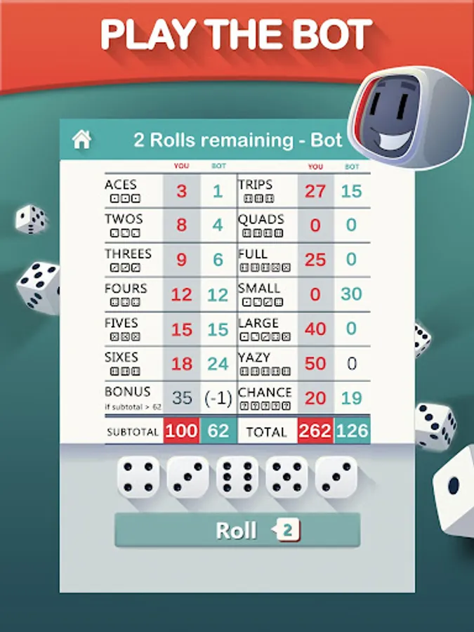Join millions of fanatical Yatzy players. Get the best dice game ever: Yazy! It is simple, fast to learn and offers you guaranteed fun!