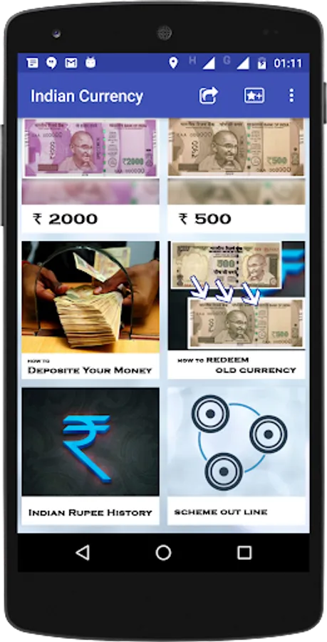 This app gives an outline about the introduction of the demonetization scheme and how is it helpful to our nation.Through this app, the users can get clarifications on the old currency deposit and exchange.