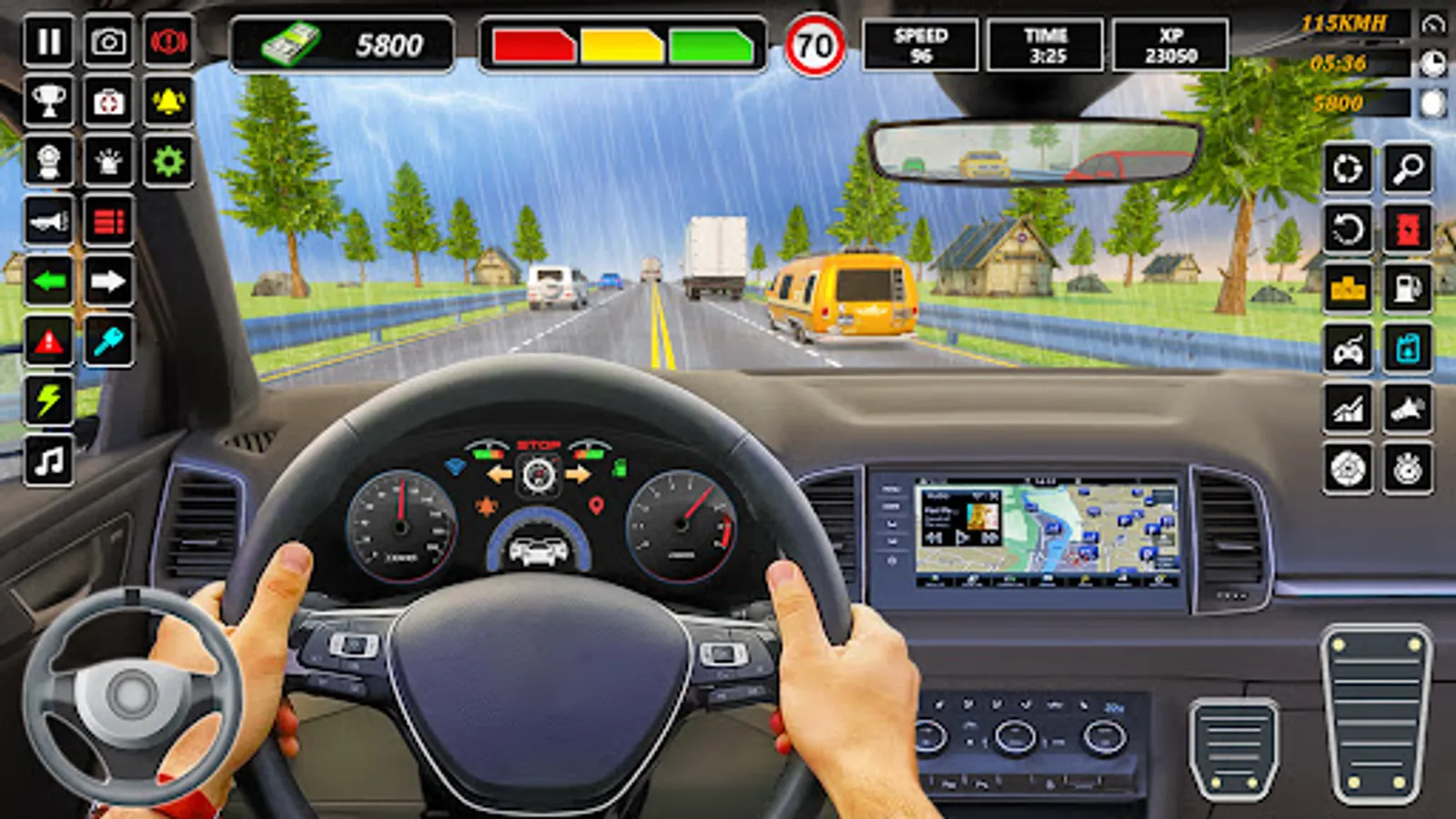 - Realistic virtual reality based car driving with full 360 degree rotation.