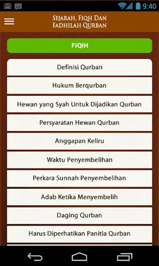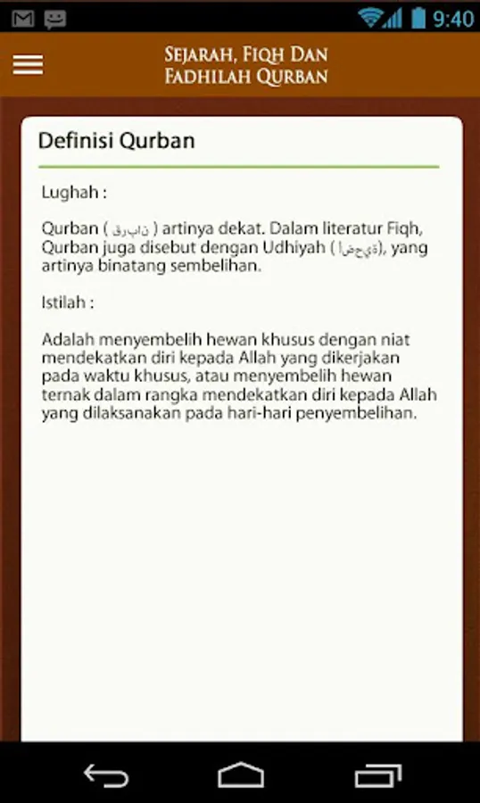 This application is very helpful for them, especially for Mudhahhi (people who want berqurban) and Committee Slaughterhouse Sacrifice in the mosque, mosque, and community agencies who want to better understand Worship Sacrifice both from the aspect of history, jurisprudence and wisdom or fadhilahnya. Every discussion we include proposition both from the Qur'an and Sunnah. We also mention some references from the books of tafsir, fiqh want any book of hadith mu'tabar.