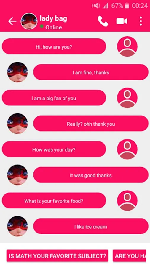 lady bag calling me is new games call that help you simulate receiving phone call me from your favorite character. It’s comic app to enjoy with your friends look like real call. laughing with your friends with a tap
